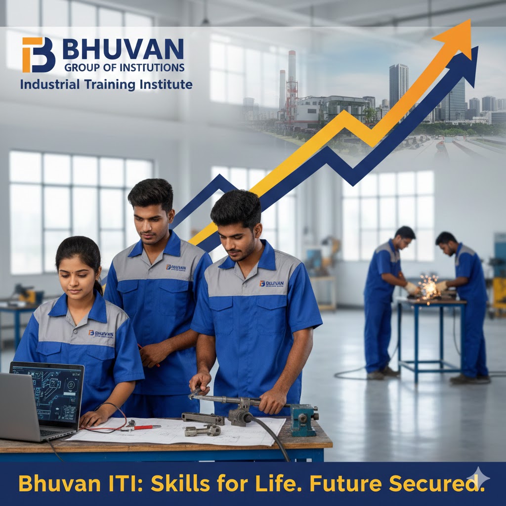 Bhuvan Industrial Training Institute (ITI) stands as a center of excellence in skill-based technical education, committed to empowering students with hands-on expertise and industry-relevant training. With a focus on employability, practical knowledge, and discipline, Bhuvan ITI prepares students to meet the growing demands of the industrial and manufacturing sectors. Our programs are designed to blend modern technology with real-world application, ensuring every trainee gains the confidence and competence required for a successful technical career.